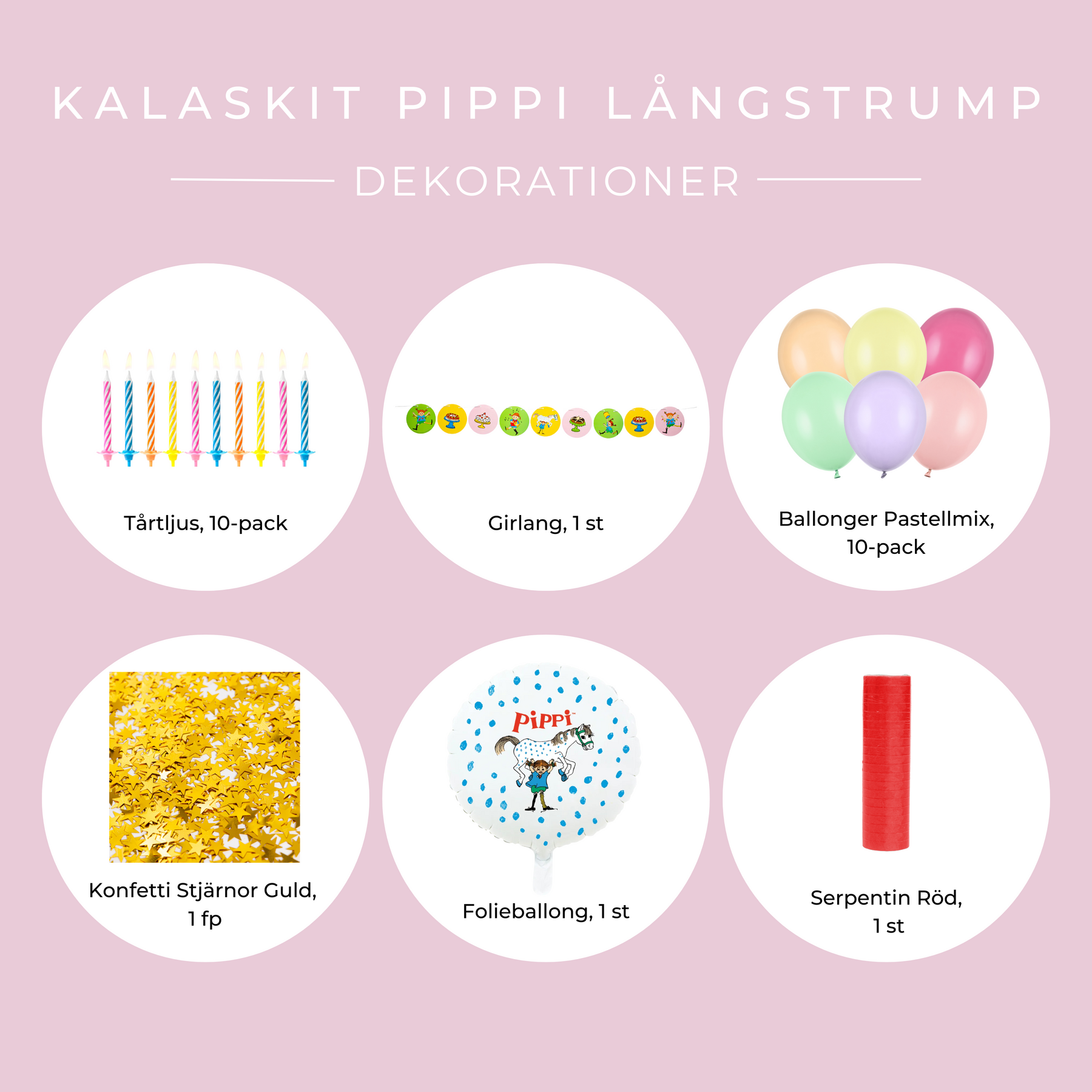 Pippi Långstrump dekorationskit innehåller: